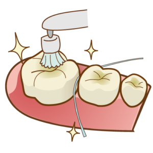 シーラントをしっかり接着させるため、歯の表面に薬剤を塗ります。