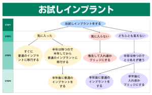 「お試しインプラント」はこの中の ③までのステップ を体験できるもの。